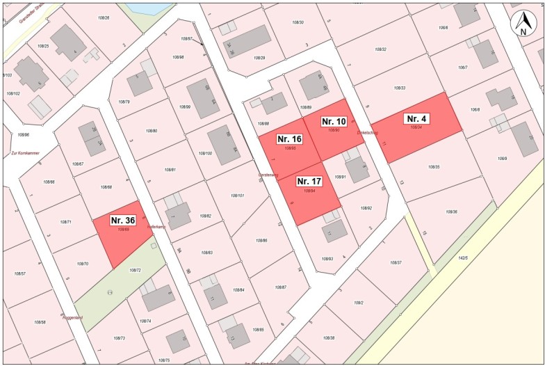 Ein Übersichtsplan der fünf Baugrundstücke ist nachstehend abgebildet.