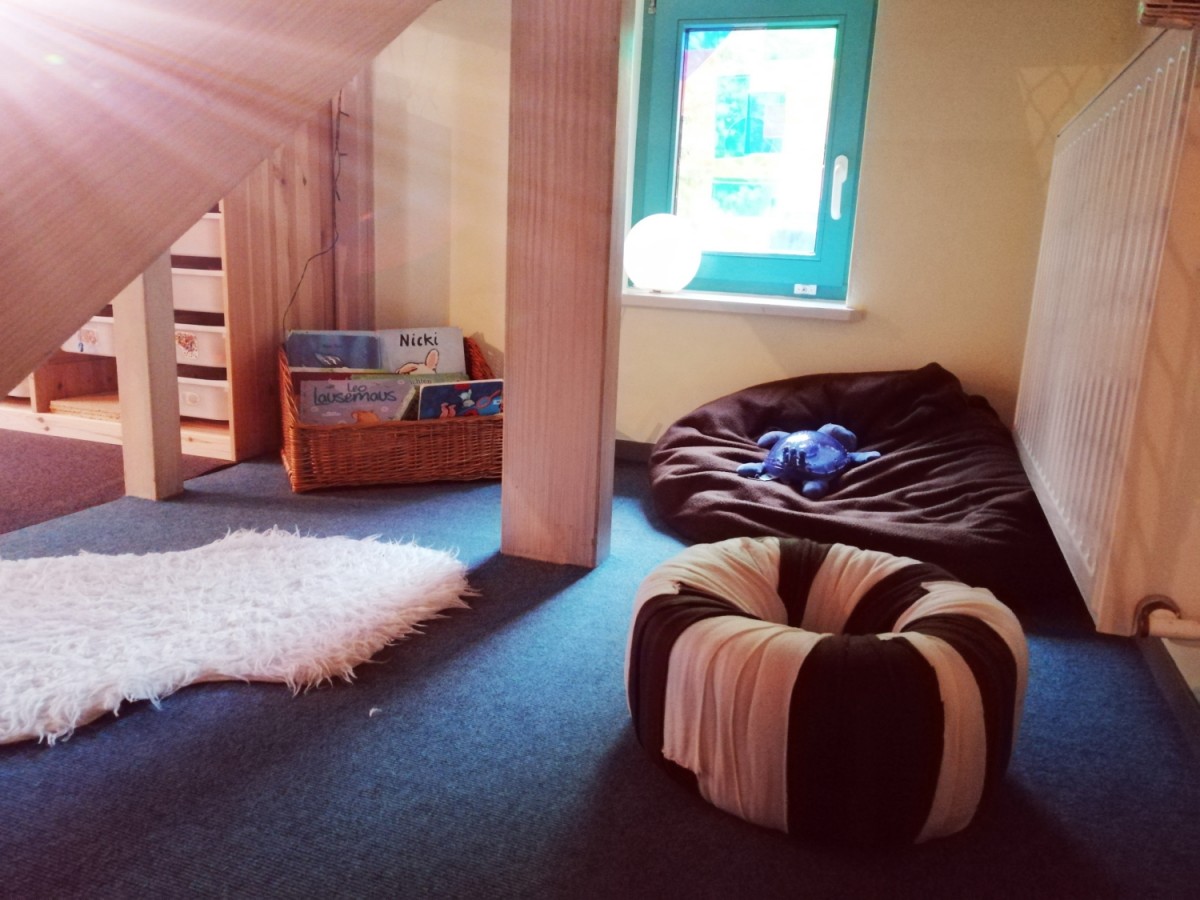 Unser Gruppenraum ist unser zusätzlicher Erzieher. Bei seiner Gestaltung achten wir auf die Interessen und Bedürfnisse der Kinder. Immer wieder beobachten und reflektieren wir um den Kindern gerecht zu werden. Wir haben verschieden Funktionsecken eingerichtet, in denen die Kinder Anregungen und Herausforderungen vorfinden als auch Geborgenheit und Rückzugsmöglichkeiten und laden zum forschenden lernen ein.